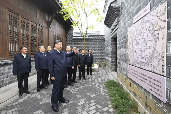 10月17日至18日,中共中央總書記、國家主席、中央軍委主席習近平在安徽考察。這是17日下午,習近平在安慶桐城市六尺巷考察。新華社記者 燕雁 攝
