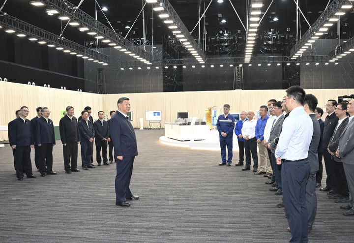 10月17日至18日,中共中央總書記、國家主席、中央軍委主席習近平在安徽考察。這是17日下午,習近平在合肥濱湖科學城察看安徽省重大科技創新成果集中展示。新華社記者 謝環馳 攝