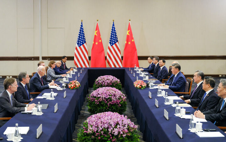 習近平指出,過去4年,中美關系雖然歷經跌宕起伏,但也開展了對話和合作,總體實現了穩定。我們指導雙方團隊通過磋商確定了中美關系的一些指導原則,共同推動兩國對話和合作重回正軌,恢復和新建了20多個溝通機制,在外交、安全、經貿、財政、金融、軍隊、禁毒、執法、農業、氣候變化、人文等領域取得了積極成果。
