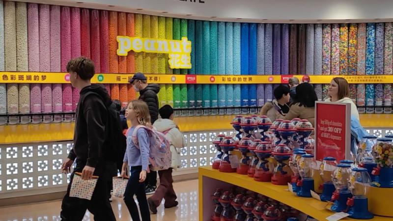 在南京路上的第一食品商店,大白兔奶糖、汪裕泰茶葉、石庫(kù)門黃酒都是老外喜歡的“老字號(hào)”伴手禮。同樣搭上這波消費(fèi)熱潮的還有各種新“國(guó)貨”品牌。