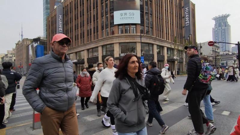 熙熙攘攘的“中華商業(yè)第一街”南京路上,各種迎新鮮花、彩紙、橫幅已經(jīng)全部到位,一派紅火景象。這里是外籍游客來(lái)上海必“打卡”的一站。