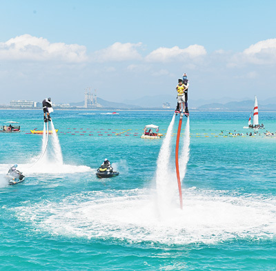 | 避寒游 海南省三亞市蜈支洲島景區,游客在體驗水上娛樂項目。 韓 峻攝(影像中國) |