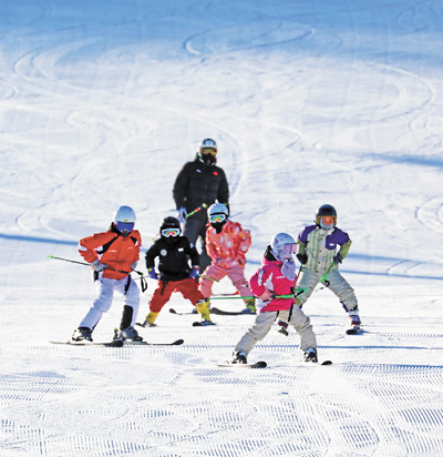 | 冰雪游 內蒙古自治區呼倫貝爾市扎蘭屯金龍山滑雪場,游客在滑雪。 韓穎群攝(人民視覺) |