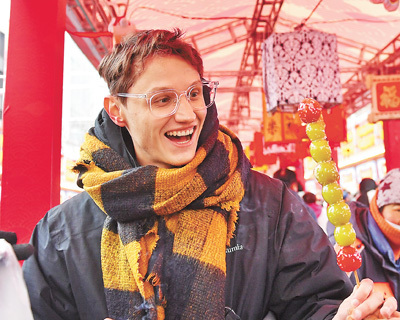 | 入境游 山東省青島市市北區大鮑島文化休閑街區糖球會上,一名外國游客在觀賞糖球。 王海濱攝(人民視覺) |