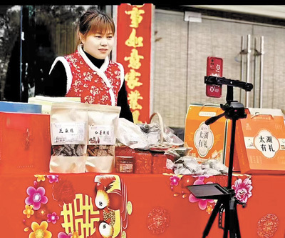 | 安徽安慶太湖縣,工作人員在進行電商直播。 資料圖片 |