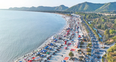 | 廣東汕尾陸豐市,金廂銀灘游人如織。 黃浩陽攝(人民視覺) |