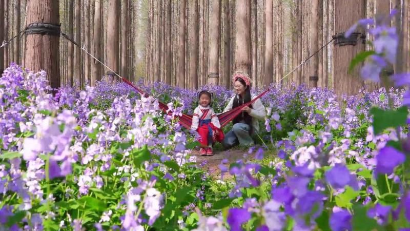 ??在江蘇金湖水上森林公園,水杉林間的100多畝二月蘭盛開,吸引眾多游客春游踏青,感受春日浪漫。