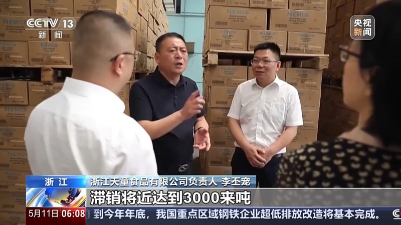 浙江天童食品有限公司負責人 李丕寵:這些庫存能夠今年給它消化掉,關(guān)稅如果還是這樣挺著,美國市場我們也就慢慢給它放掉了。