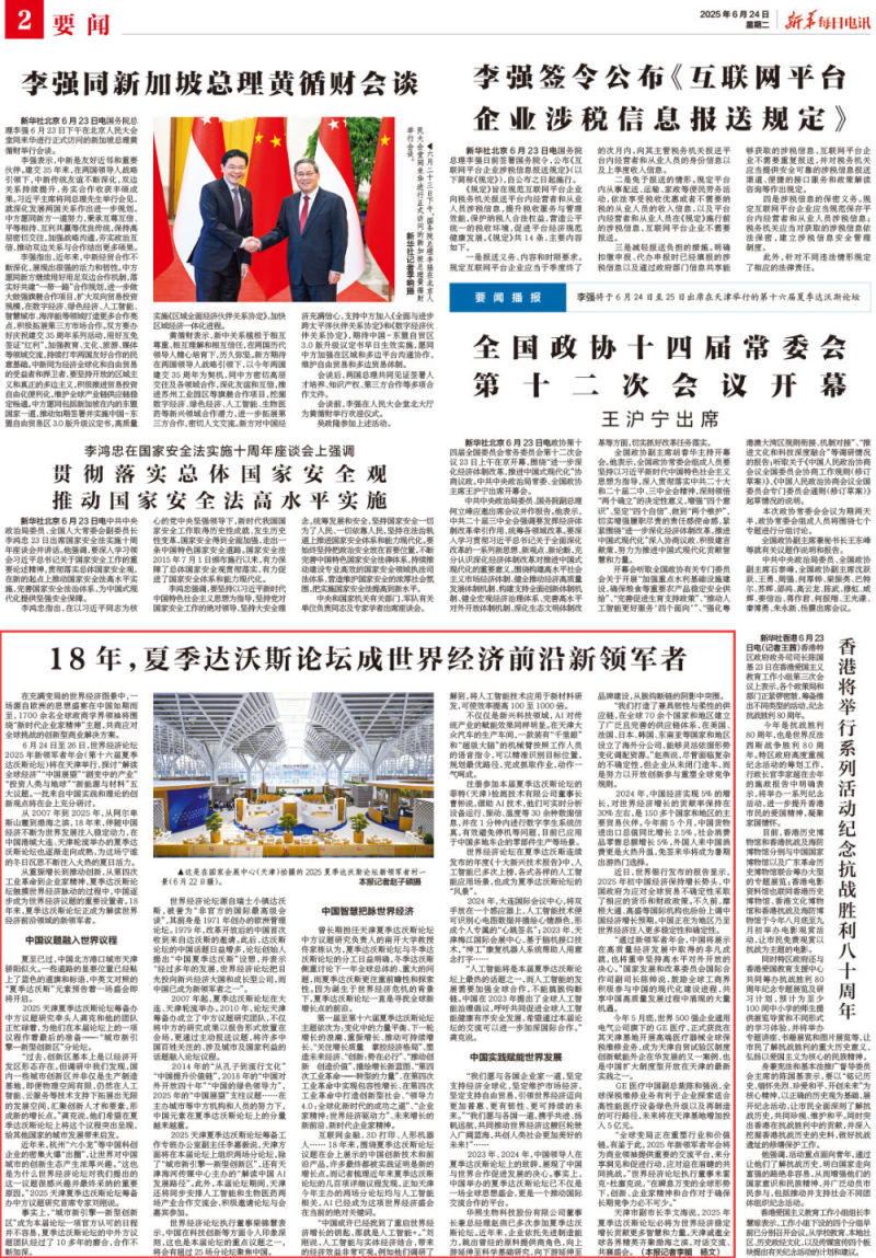 6月24日至26日,世界經(jīng)濟論壇2025年新領(lǐng)軍者年會(第十六屆夏季達沃斯論壇)將在天津舉行,探討“解讀全球經(jīng)濟”“中國展望”“劇變中的產(chǎn)業(yè)”“投資人類與地球”“新能源與材料”五大議題。一批來自中國實踐和理論的創(chuàng)新觀點將在會上充分研討。