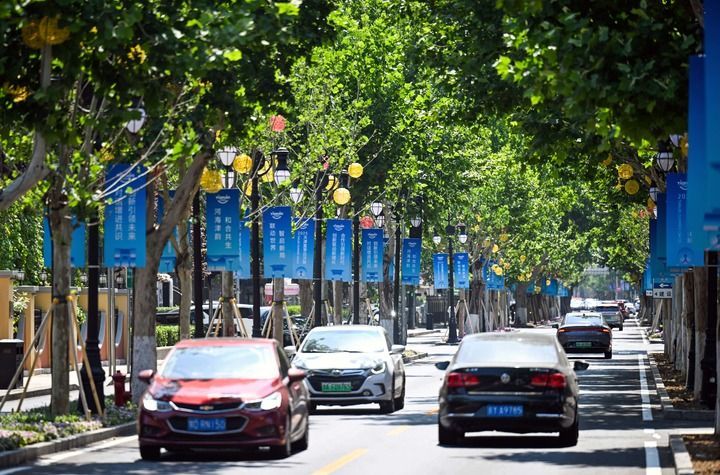 在天津市和平區(qū)泰安道,道路兩旁的路燈上懸掛著2025夏季達沃斯論壇宣傳標(biāo)語(6月21日攝)。
