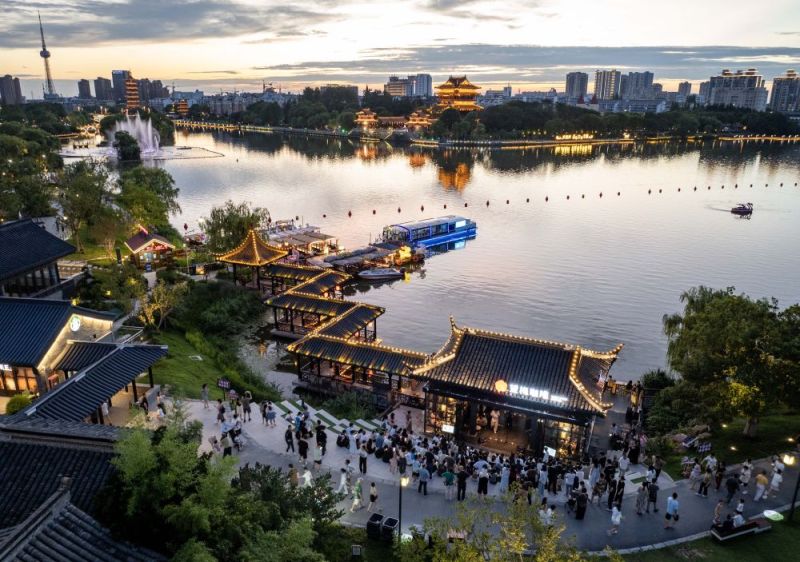 6月28日,人們在泰州市海陵區(qū)桃園景區(qū)游玩(無人機照片)。