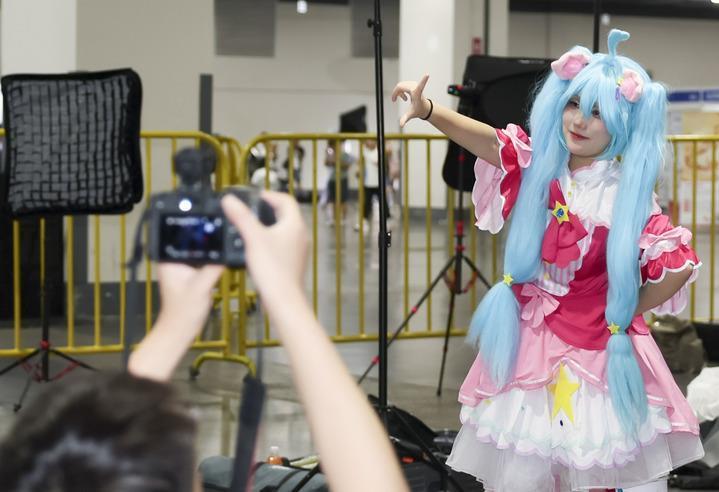 在上海舉行的2025年中國國際動漫游戲博覽會上,扮裝者在攝影區拍照(7月4日攝)。新華社記者 王翔 攝