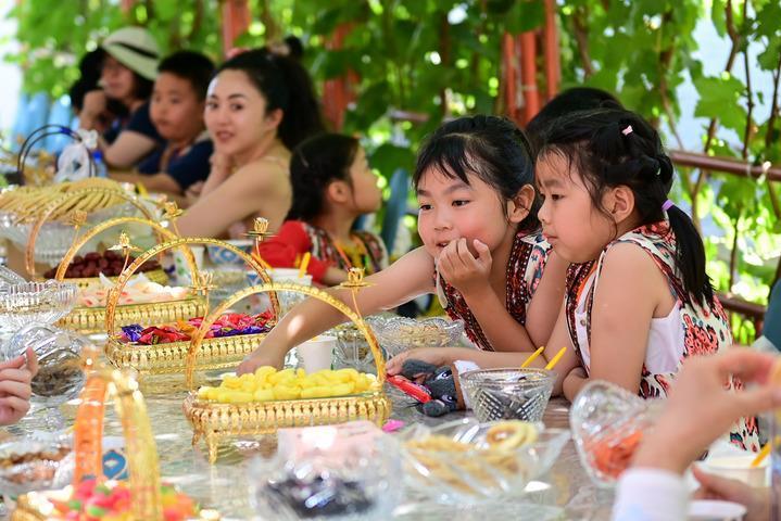 游客在新疆伊犁哈薩克自治州伊寧市伊犁老城喀贊其文化旅游區家訪點品嘗當地美食(7月23日攝)。新華社記者 丁磊 攝
