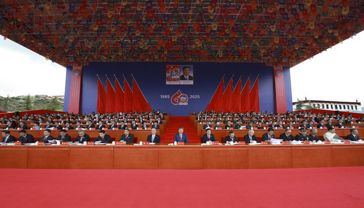 王滬寧發(fā)表講話。他說(shuō),1965年9月,在黨中央親切關(guān)懷和黨的民族政策光輝照耀下,西藏自治區(qū)宣告成立。這是西藏發(fā)展史上具有劃時(shí)代意義的大事,鞏固了西藏和平解放和民主改革的偉大成果,實(shí)現(xiàn)了西藏社會(huì)制度的歷史性跨越。60年來(lái),西藏經(jīng)濟(jì)社會(huì)全面發(fā)展,民族區(qū)域自治制度成功實(shí)踐,民族團(tuán)結(jié)日益鞏固,各族人民生活蒸蒸日上,充分展現(xiàn)了中國(guó)共產(chǎn)黨領(lǐng)導(dǎo)的堅(jiān)強(qiáng)力量,充分展現(xiàn)了我國(guó)社會(huì)主義制度的顯著政治優(yōu)勢(shì)。