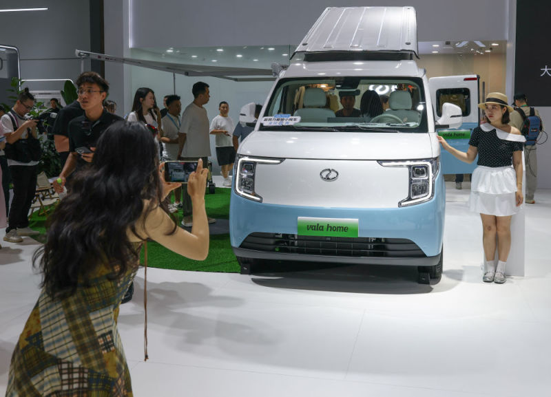 ??9月5日,觀眾在智博會現場參觀新能源房車。新華社記者 陳誠 攝