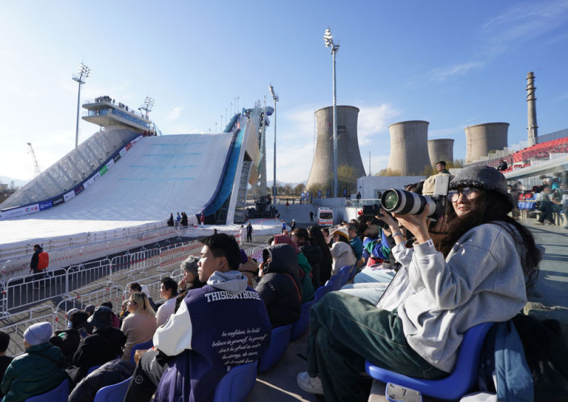 2024年11月30日,觀眾在首鋼大跳臺觀看2024-2025賽季國際雪聯單板及自由式滑雪大跳臺世界杯北京站比賽。連日來,多項世界級賽事在“雪飛天”“冰絲帶”等北京冬奧會場館上演,精彩連連。北京冬奧會后,越來越多的冰雪賽事讓冰雪流量轉化為持續增長的市場價值,一系列高水平賽事在吸引了大量游客前來觀賽的同時,拉動了賽事周邊消費,讓冰雪經濟“熱起來”。新華社記者 張晨霖 攝