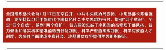 陳希強調,要堅持用習近平新時代中國特色社會主義思想武裝黨員干部頭腦,推動學習貫徹往深里走、往心里走、往實里走;鞏固拓展主題教育成果,建立和落實不忘初心、牢記使命的制度;選優配強各級領導班子,強化政治素質考察、政治把關、政治監督,加強思想淬煉、政治歷練、實踐鍛煉、專業訓練,提高干部制度執行力和治理能力,完善擔當作為的激勵機制,推動干部銳意進取、奮發有為,堅決反對形式主義、官僚主義;增強各級黨組織政治功能和組織力,著力實現黨的組織和黨的工作全覆蓋,健全和落實黨組織領導的城鄉基層治理體系,發揮基層黨組織在重大任務落實中的戰斗堡壘作用;實施更加積極、更加開放、更加有效的人才政策,聚天下英才而用之。切實加強組織部門自身建設,著力建設風清氣正的政治機關。