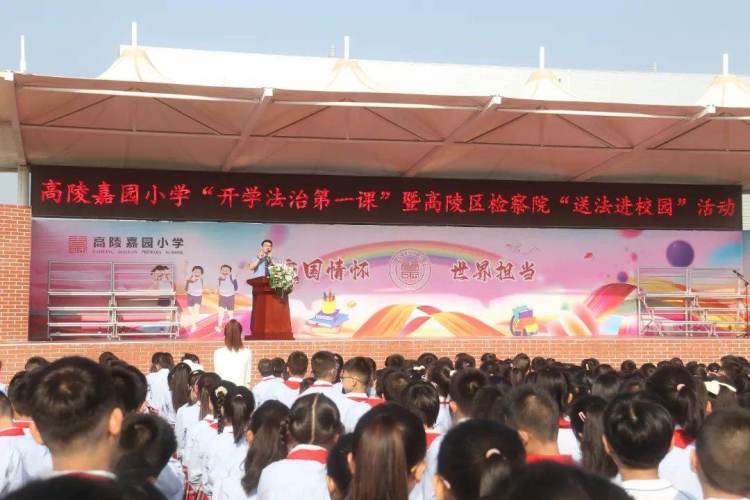 9月4日上午,高陵檢察院走進高陵嘉園小學參加該校開學典禮,開展“開學季法治進校園”主題黨日活動,為該校逾千名師生講授法治第一課。“小鹿燈”未檢檢察官以“法律就在你身邊”為主題,通過講述關于胎兒、國籍、未成年人、成年人、老年人等法律詞語,讓同學們了解法律就在我們身邊,幫助同學們提升法律自我保護意識和自我保護能力,引導未成年人尊法、學法、守法、用法。