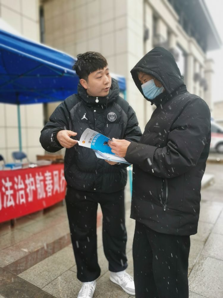 同時在全區各街道重點地段,區司法局工作人員發放宣傳資料的同時,重點對民法典、法律援助服務、公證法及防范電信網絡詐騙等進行宣傳講解,提醒外出務工人員增強自身保護意識。