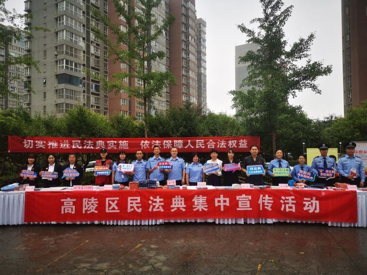 今年5月28日是《中華人民共和國民法典》頒布三周年,為全面貫徹落實黨的二十大精神,貫徹落實習近平總書記來陜考察重要講話重要指示,推動民法典宣傳學習走深、走實,高陵區司法局積極安排并組織全區各單位各部門以“美好生活·民法典相伴”為主題廣泛開展民法典學習宣傳活動。5月26日,高陵區司法局聯合區法院、區檢察院、公安分局、鹿苑街道、區婦聯、區公證處、區法律援助中心等單位在高陵區鹿苑街道城西社區天下榮郡小區聯合開展大型民法典集中宣傳活動。