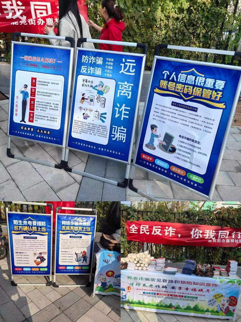 10月10日,鹿苑司法所聯合鹿祥社區開展“全民反詐,與我同行”的活動。活動現場,工作人員通過懸掛橫幅,發放宣傳資料,擺放展板等方式積極宣傳各類與老年居民日常生活密切相關的反詐知識,取網絡、電信、養老詐騙等。工作人員還現場指導老年居民下載安裝反詐APP軟件,更好的維護自己的錢袋子。