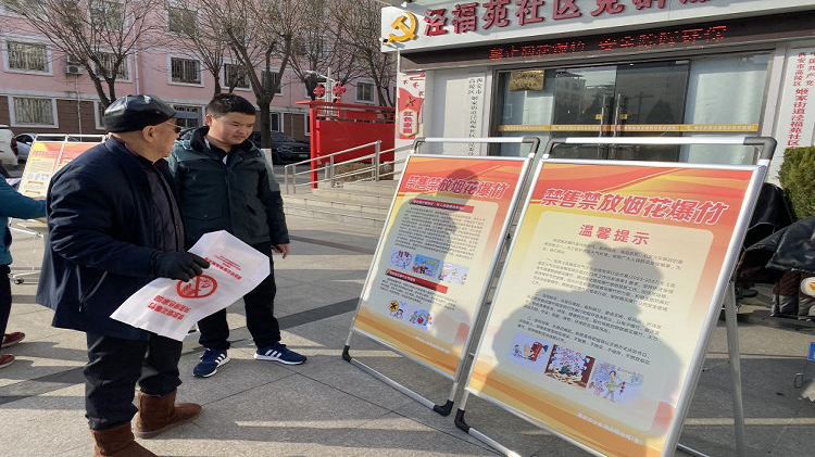活動現場,工作人員向居民、商戶發放《禁燃禁售告全區人民書》、禁燃禁售宣傳冊及手提袋,積極引導商戶及居民做到不銷售、不儲存、不燃放煙花爆竹。同時,社區充分利用公告欄、展板、橫幅廣泛宣傳禁止燃售煙花爆竹的通知及相關安全知識,營造了濃厚的宣傳氛圍。