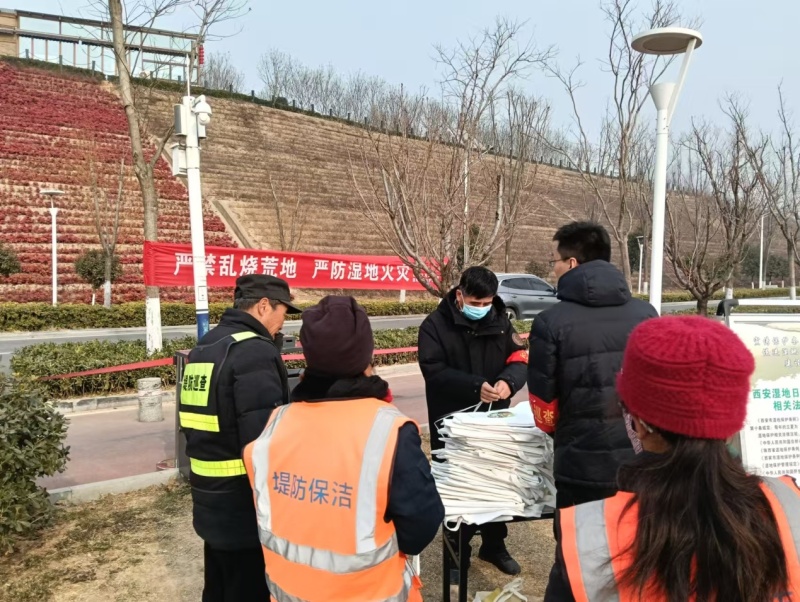 近期,氣溫偏高雨水稀少,濕地防火風險增大,為了預防濕地火災發(fā)生,按照局領導安排及要求, 1月22日下午,區(qū)濕地巡查保護站及時組織工作人員,在涇渭分明開展?jié)竦胤阑鹦麄骰顒印P麄鹘M采取組裝宣傳車、發(fā)放宣傳資料的方式, 向廣大游客、當?shù)厝罕娦麄鳌l(fā)放《森林防火倡議書》、《中華人民共和國濕地保護法》、《陜西省濕地保護條例》及《西安市濕地保護條例》等法律法規(guī)資料, 累計發(fā)放各類宣傳資料300余份。通過宣傳,進一步提高了群眾防火意識以及濕地保護法律意識,促進了濕地防火工作的開展。