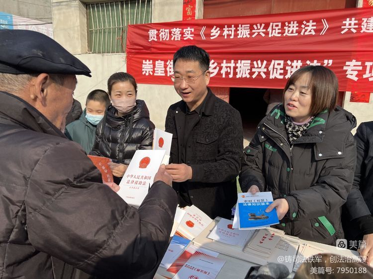 為進一步學習好、宣傳好、貫徹好、落實好《鄉村振興促進法》,切實增強全體干部依法推進鄉村振興戰略意識,提高群眾的知曉率和滿意度.2月3日,高陵區司法局組織高陵區法律援助中心、高陵區公證處,聯合崇皇街道辦、區婦聯在崇皇街道井王村集中開展《中華人民共和國鄉村振興促進法》大型宣傳活動。