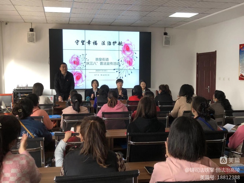 為進一步提高廣大婦女群眾依法維權的意識和能力,積極營造保護婦女兒童權益的良好社會氛圍,3月8日上午,崇皇街道聯(lián)合區(qū)司法局在崇皇社區(qū)開展“守望幸福 法治護航”的主題宣講活動。崇皇社區(qū)婦女兒童共計70余人參加。