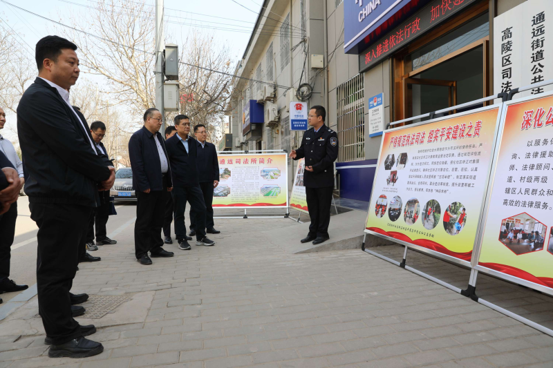 3月10日下午,陜西省司法廳黨組成員、副廳長麻仁偉一行到高陵區督導檢查新時代“六好司法所”規范化建設暨矛盾糾紛大排查大化解專項活動開展情況。西安市司法局局長蘇國峰,區委政法委書記雷承立,區委常委、通遠街道黨工委書記陳靈,副區長、公安高陵分局局長賈海軍,區司法局局長馬隨民,通遠街道主要負責同志陪同檢查。