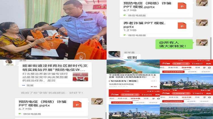 “線上+線下”,多載體豐富普法宣傳方式。通過線下舉辦法治講座、設置法治宣傳欄、發放普法宣傳資料,線上通過學習強國APP、微信群、公眾號等擴大普法覆蓋面,營造濃厚宣傳氛圍。