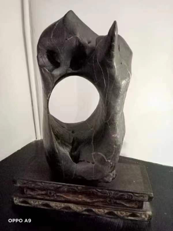 石為實,洞為虛; 石上帶洞,虛實相生。石頭的質地都非常堅硬,上面能形成孔洞本就不易,這方展品孔洞圓融通透,讓其姿態變得剛中帶柔,纖巧靈動。一個孔洞,便讓石體化實為虛,讓石頭的氣勢有發有收,有動有靜,讓石頭圓活連貫,形意相隨。