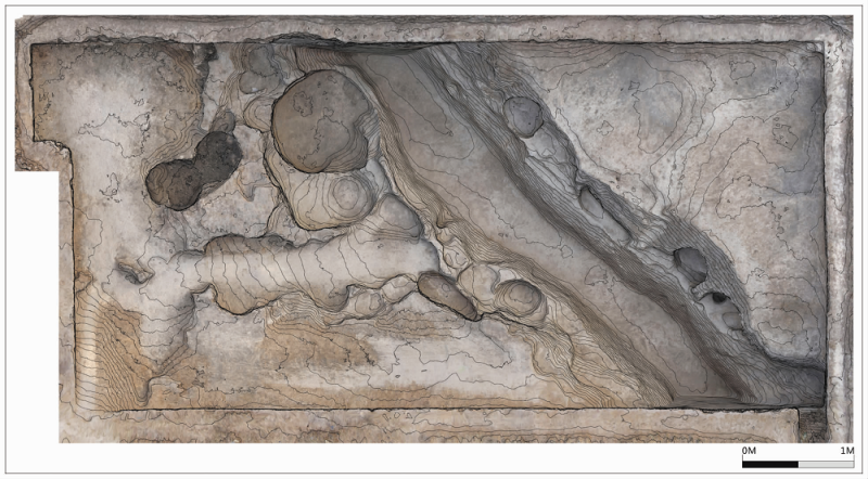 環壕東北角(G1)是環壕東北轉角,夾角近120°,是東段環壕與北段環壕的連接區域。呈較深的溝槽狀,西北—東南走向,口寬底窄,溝壁較直,底面較為平整。揭露部分長約95米、上口寬8—9.7米、底寬約3.7米、深3.35米。環壕內發現了大量文化遺存。遺物主要有尖底瓶、卷沿曲腹盆、夾砂罐等陶器,還發現了各類骨器及少量的石器。