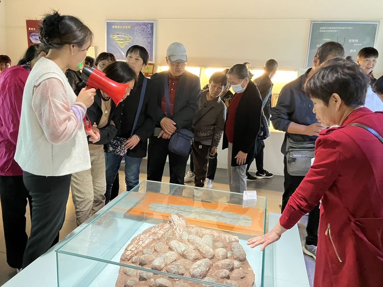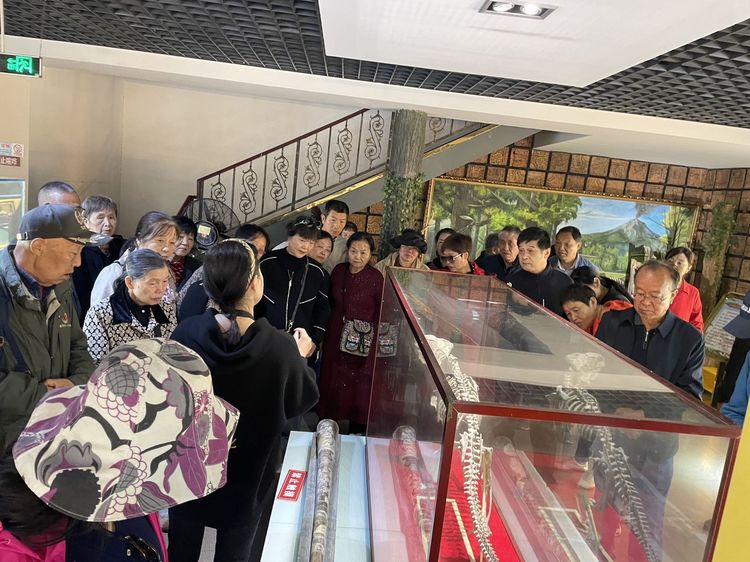 講解員向老人們講解了化石的形成、類別及生物進化等知識,讓老人們深刻體驗到了遠古生命的奧秘。