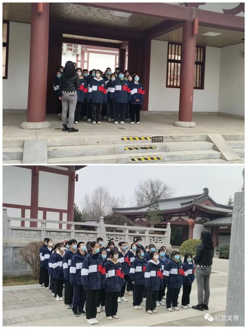在高陵一中教師的帶領下,各位同學組隊有序,專注耐心地聆聽了博物館講解員講述“涇渭分明、楊官寨遺址、昭慧塔、李晟碑”等自然景觀和各時期的重要文物。師生與講解員通過實地參觀、相互交流的方式,發掘出文物本體的文化內涵,同時,紛紛感受到了更貼近實際和生活的文化氣息。
