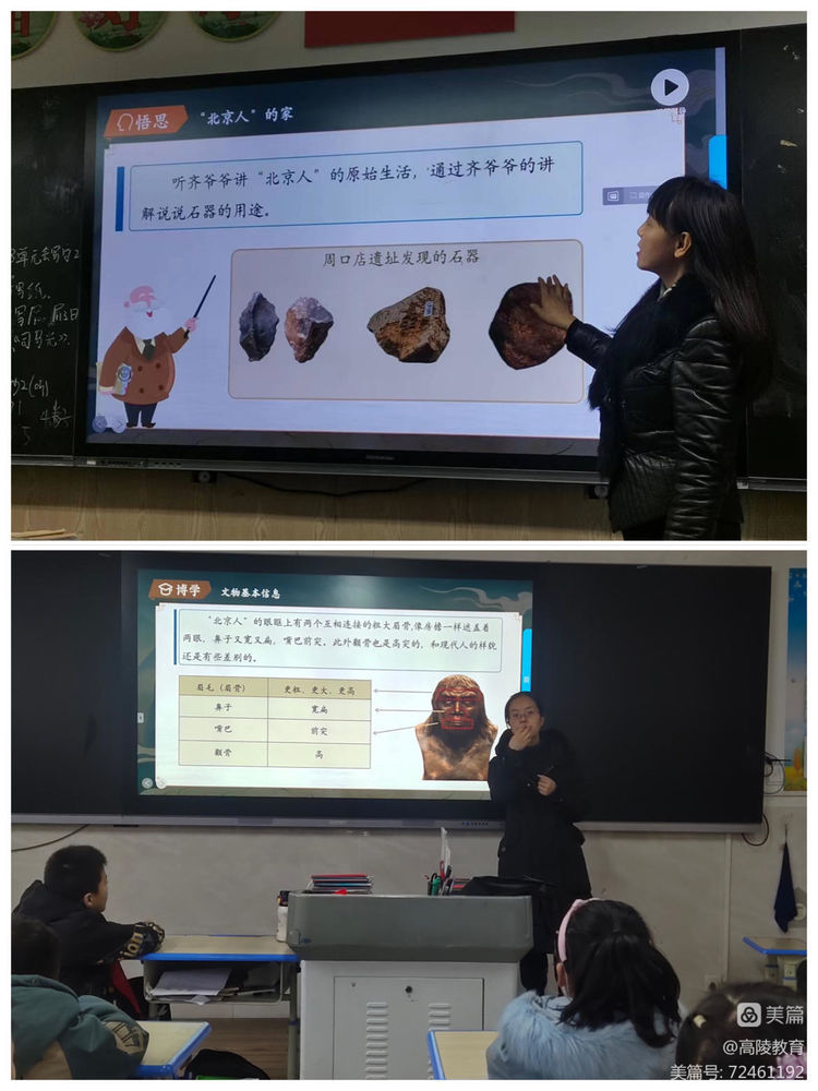 高年級學生在第一課的學習中對文物的了解和認識是基礎,同時還要透過本身去了解文物那段歷史背景,比如本節課就是重點了解認識,遠古時代人類所使用的生活生產工具,通過這些工具延伸到我們現在人所使用的工具,通過他們的生存生活方式,延伸到我們現代的生活,體會思考對那段歷史有一個深刻的了解與認識,同樣每節課結束也會有一些相對較難的生字、古詩、詞匯的學習。