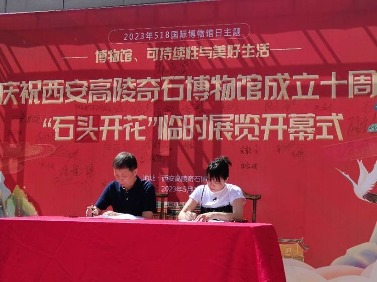 2023年5月18日是第47個“國際博物館日”,同時也是西安高陵奇石博物館建館十年紀念日,為了慶祝這一天,我們博物館精心準備了數月,在西安工商學院葉校長和微影星火數字傳媒產業學院的大力支持下,隆重舉行“石頭開花”臨時展覽開幕儀式。