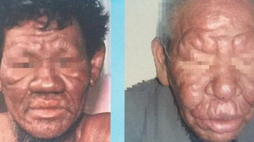 麻風病的臨床表現多種多樣,早期表現主要是皮膚出現不痛不癢的淺色或紅色斑片,伴有感覺減退或喪失,隨著病情逐漸發展,患者可出現兔眼、歪嘴、爪形手、垂足、足底潰瘍等畸殘癥狀。