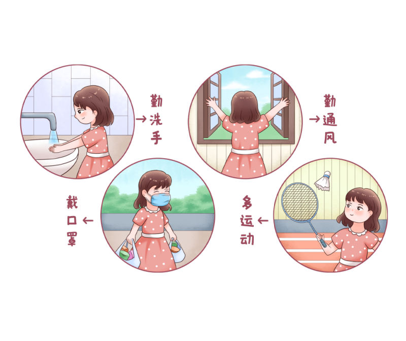 注意個人衛生習慣,勤洗手,特別是飯前便后、觸摸眼睛、鼻或口腔前后、外出回家后要洗手;盡量用洗手液或肥皂、流動水洗凈,防止流感病毒通過粘膜傳播。咳嗽、打噴嚏時注意遮擋。