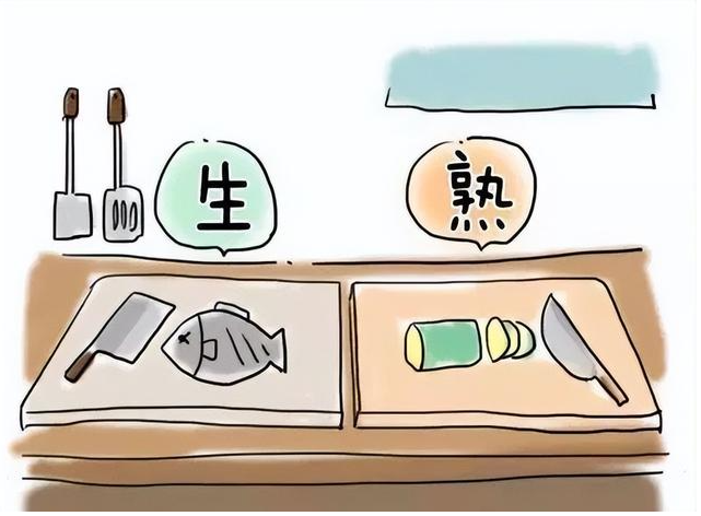 2.家庭制備食物時要注意生熟分開,加工和盛放生肉、水產品和蔬菜的器具要與熟食分開,使用后要及時清洗消毒;特別處理畜禽肉類和水產品類食品時更要注意,在冰箱儲存時也要分隔存放。