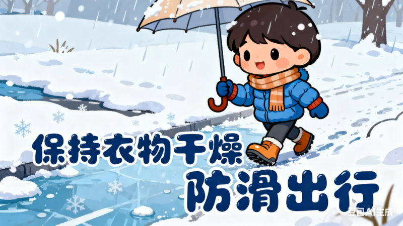 重點防寒保暖,預防凍傷與跌傷:戶外出行應穿戴足夠的防寒衣物,保持衣物干燥,避免濕冷。雨雪天氣盡量減少外出,必須外出時應選擇防滑的鞋,避開結冰區域。
