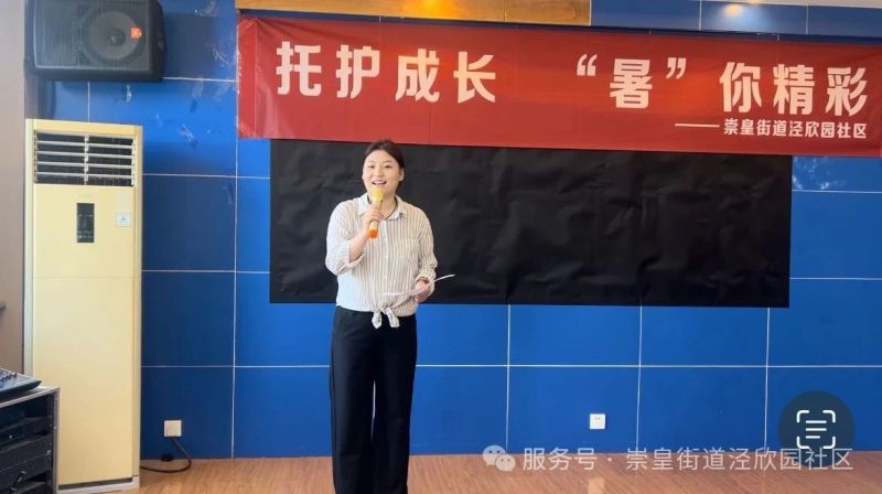隨后,志愿者們依次上臺做自我介紹:“大家好呀!我是李素琴,你們可以叫我李奶奶~ 我跳了10年舞蹈啦,希望咱們一起在舞蹈里變開心、變挺拔!”57歲的李素琴老師笑著做自我介紹。大家好,我是小劉老師,暑假里我會在作業(yè)輔導角幫大家解答難題,咱們一起把暑假作業(yè)‘消滅’掉,有不會的題隨時找我!”大學生志愿者小劉姐姐的話讓孩子們頻頻點頭。