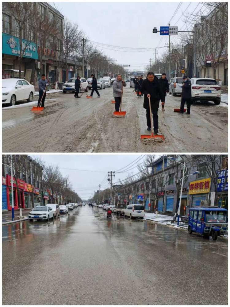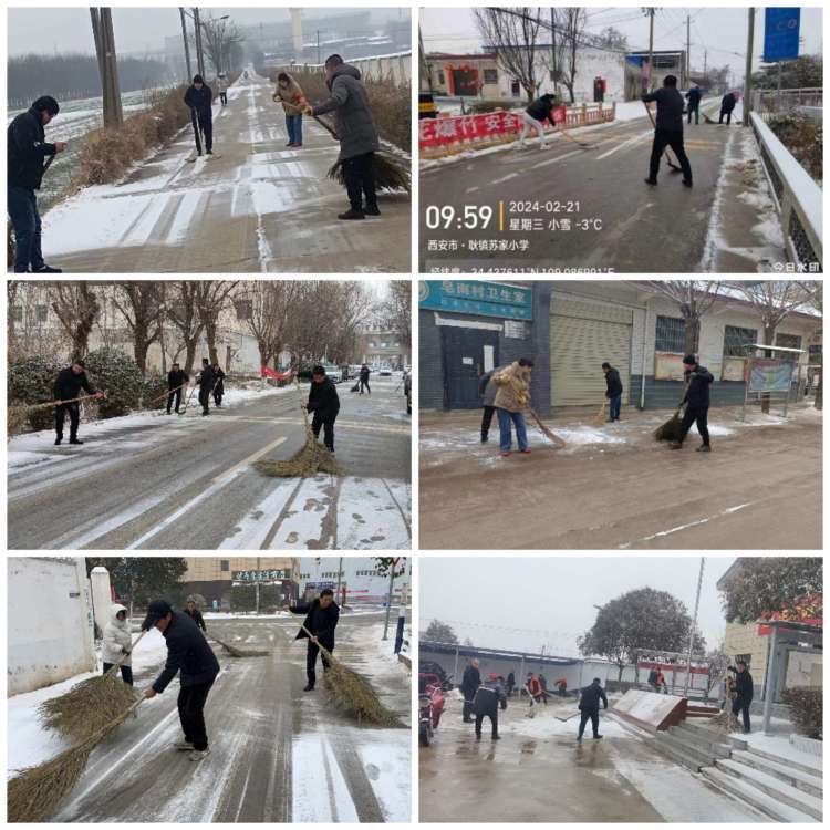 在清雪除冰過程中,街道機關、各村(社區)黨員干部聞令而動,街道包村領導到村帶領村組黨員干部群眾共同清雪除冰,大家不畏嚴寒,團結協作,干勁十足,鐵鍬與地面的撞擊聲不絕于耳,掃帚掃雪時沙沙的聲音交織在一起,大家分工明確,配合默契,鏟的鏟、推的推、掃的掃,干的熱火朝天,不亦樂乎,忙碌的身影成為了白雪中最靚麗的風景線,為群眾清掃出一條條出行的“安心路”。