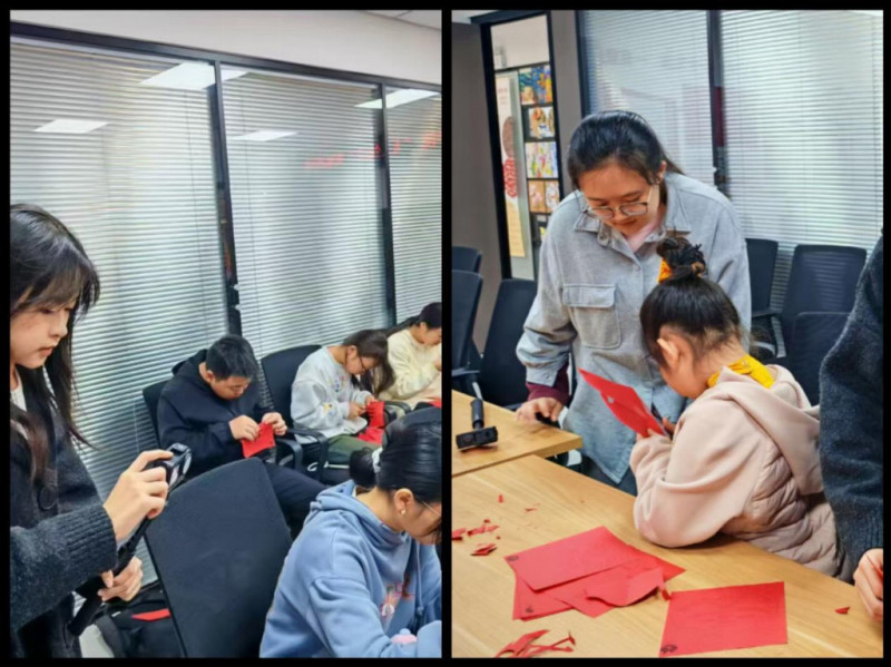 隨后,胡老師手把手傳授剪紙基礎(chǔ)技法,從紙張折疊、圖案勾勒到剪刀運(yùn)裁,耐心指導(dǎo)在場(chǎng)的大學(xué)生與中小學(xué)生完成屬于自己的生肖剪紙作品。紅紙翻飛間,一個(gè)個(gè)造型靈動(dòng)的生肖形象躍然紙上,孩子們的歡聲笑語與剪刀的 “咔嚓” 聲交織,構(gòu)成了一幅生動(dòng)的文化傳承畫卷。