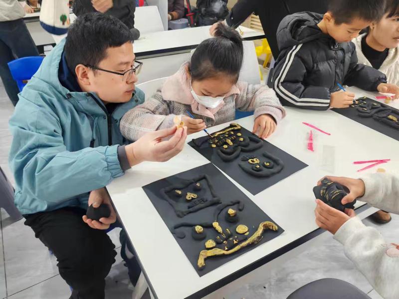 通過“馴河童子”的傳說,抽象的良渚水利工程變成了孩子們能理解的勇氣與智慧。隨后,大家通過用泡泡泥,和硬紙板制作良渚圖騰符號,體驗良渚文化的神秘與浪漫。