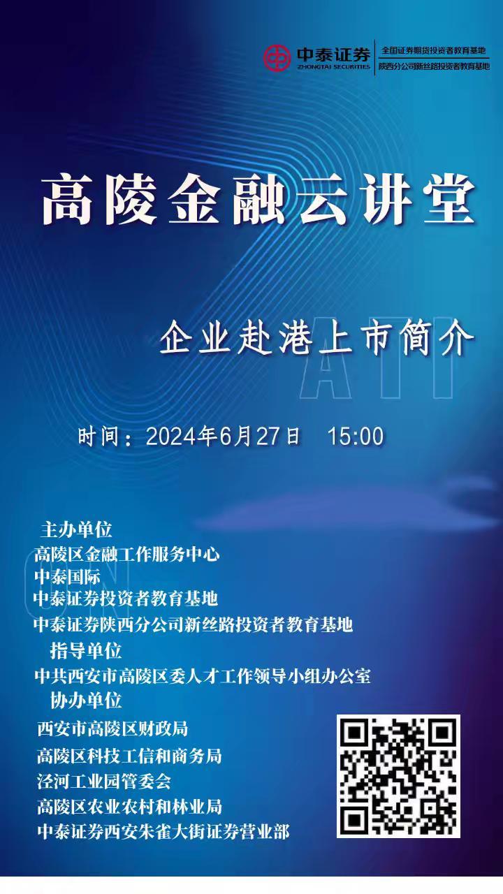 為不斷優(yōu)化金融營商環(huán)境,持續(xù)做好企業(yè)掛牌上市宣傳,結(jié)合多層次資本市場發(fā)展,幫助轄區(qū)企業(yè)及投資者及時(shí)、準(zhǔn)確地了解企業(yè)赴港上市的基本條件,6月27日,高陵區(qū)金融工作服務(wù)中心聯(lián)合中泰證券陜西分公司新絲路投資者教育基地及新浪財(cái)經(jīng)組織開展了“高陵金融云講堂”系列活動之“企業(yè)赴港上市簡介”宣傳培訓(xùn)活動。本次活動共1000余人次在線參與。