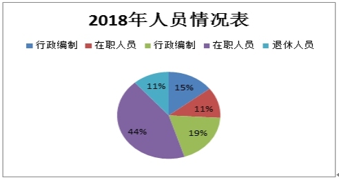 截止2018年底,本部門人員編制65人,其中行政編制28人、事業編制37人;實有人員109人,其中行政22人、事業84人。單位管理的離退休人員22人。