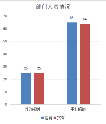 截至2018年底,本部門人員編制90人,其中行政編制25人、事業(yè)編制65人;實(shí)有人員89人,其中行政25人、事業(yè)64人。單位管理的離退休人員7人。