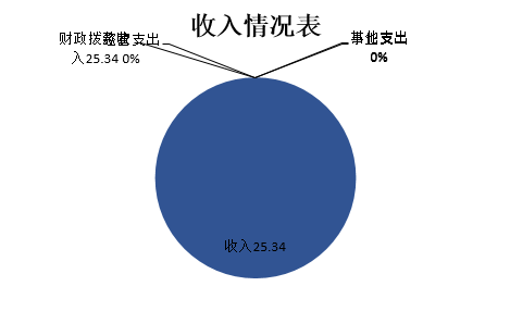 2019年度收入合計25.34萬元,其中:財政撥款收入25.34萬元,占100.00%;事業(yè)收入0.00萬元,占0.00%;經(jīng)營收入0.00萬元,占0.00%;其他收入0.00萬元,占0.00%。