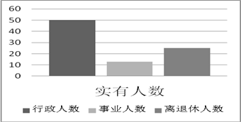 截止2018年底,本部門人員編制50人,其中行政編制36人、事業編制14人;實有人員63人,其中行政50人、事業13人。單位管理的離退休人員25人。